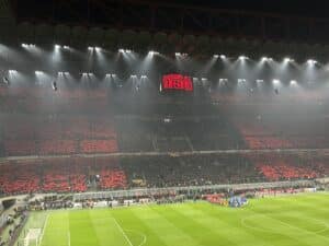 SCENE DI DELIRIO IN TUTTO LO STADIO AL FISCHIO FINALE AL GRIDO DI CHI NON SALTA E’ …..(INNOMINABILI”) A RIBADIRE, SE CE NE FOSSE BISOGNO, CHE MILANO SIAMO SOLO NOI, DAL 1899